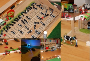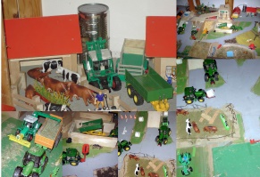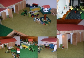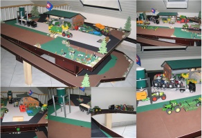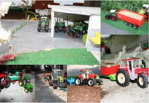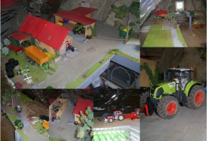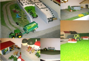 |  | Wir Jens (42) u. Jim (6) besitzen ein Fahrdiorama für Siku Controll Trecker und LKW. Die Größe in der Länge: 2,75 m u. in der Breite: 1,6 m. Die Bauzeit, jetzt nach dem man bis auf den Fußboden fahren kann betrug ca. 5 Monate. Wir sind von Großmaschinen in der Landwirtschaft fasziniert. |