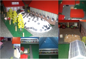 Nach und nach wurde der Stall, dann die Maschinenhalle, die Fahrsilo und die Jauchegruben gebaut. Das ganze steht jetzt bei uns auf dem Dachboden und ist ca. 6 qm groß. Dazu kommen noch im Nebenzimmer eine Biogasanlage.