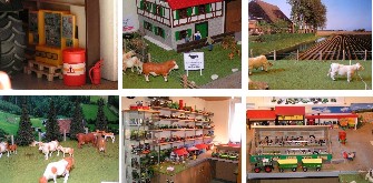 | Ich bin 36 Jahre, und sammle im Grunde schon seit meiner Kindheit. Bild1: Ein Werkzeugschrank darf auf keinem Hof fehlen. Bild 2: Ein Klönschnack unter Altbauern Bild 3: Die Chairolais auf der Wiese am Bach Bild 4: Die Ammen auf der Wiese am Waldrand Bild 5: Die linke Hälfte meines Hobbyzimmers. Bild 6: Stirnseite meines Hofes. Gut zu sehen der Laufstall für die Milchkühe. |