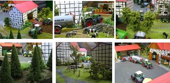 | Mein Name ist Ralf und ich bin 31 Jahre alt. Ich sammle schon seit Jahren Modelltraktoren, was mir auf Dauer zu langweilig wurde. Daher habe ich vor ca. 1,5 Jahren mit einem Diorama angefangen. Es hat eine Fläche von ca. 25 m². Es fehlen noch einige Kleinigkeiten, aber es fallen einem ja sowieso immer wieder neue Sachen ein. Viel Spaß beim Schauen. |