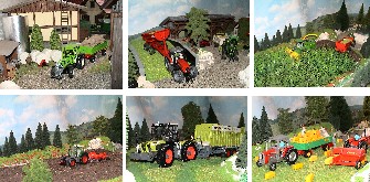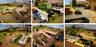 | Hallo ich bin der Müllermann, 31 Jahre alt. An meinem Diorama baue ich seit ca. 3 Jahren. Mein Hof besteht aus drei Gebäuden, einer alten Scheune, einer Maschinenhalle und einem Laufstall. Außerdem gehören noch zwei große Fahrsilos und eine Biogasanlage dazu. Ich habe versucht verschiedene Arbeitseinsätze nachzustellen, wie z.B. Maissilage, Bodenbearbeitung, Schwaden, Mulchen, Siloballen pressen etc. |