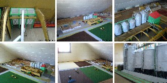 | Das Diorama ist der Nachbau unseres unseres Hofes. 1. Bild: Silosäcke zur Aufbereitung von Saatgut. 3. Bild: Verrohrung der Siloanlage, im Hintergrund der noch im Bau befindliche Bullenmaststall. 2. u. 4. Bild: Gebäude des Hofes, Rundsilos haben eine Gesamtkapazität von ca. 800 Tonnen Getreide. Im grünen Gebäude ist eine Getreidetrocknung, Getreidereinigung und eine Waage eingebaut. 6. Bild: Details der Siloanlage (z.B. Leitern, Podeste) Ich baue jetzt seit ca. 1,5 Jahren an dem Diorama und bin 18 Jahre alt. |
