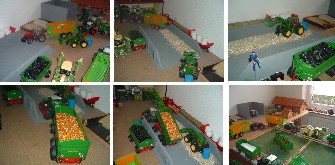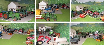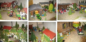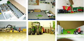 | Baubeginn meines Dioramas war 2003: erster Bauabschnitt: Laufstall für 98 Kühe nach Vorbild meines Onkels (Vorbild Selz), Erweiterung Doppelkammerfahrsilo, Acker für Siku Control Zweiter Bauabschnitt: Jungviehstall (Vorbild Selz), Erweiterung Güllebehälter, Neue Maschinenhalle, Holzplatz mit Pferde- und Kuhfuhrwerk, Modell Maisfeld, Modell Rübenfeld Mein Diorama ist leider nur bei Ausstellungen aufgebaut, sonst steht es in Kisten verstaut. |