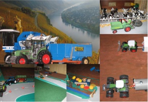 ![]() | Ich heiße Markus, bin 14 Jahre alt, und habe neben großen Traktoren noch ein anderes Hobby, die kleinen Traktoren. Aber seht selbst auf den folgenden Bildern! 1. Bild: Weinlese an der Mosel, 2. Bild: Ein voller Kartoffelzug ist in den Bach gefahren, 3. Bild: Ganzansicht der Straße, des Baches, der Felder und Wiesen, 4. Bild: ein Kürbisverkaufsstand an der Straße, 5. Bild: selbstgebautes 3-Achser Güllefass an umgebautem Fendt, im Hintergrund ein Güllefeldcontainer, 6. Bild: selbstgebauter Bullenmaststall mit Futterkehrreifen an Fendt GT |