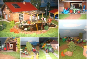 ![]() | Hallo, ich bin Thomas, bin 14 Jahre alt und komme aus Unterdietfurt in Niederbayern. Da wir selber einen Milchviehbetrieb führen, bin ich auf den Dioramenbau gekommen. Es stellt einen Milchvieh-, Ackerbaubetrieb dar. Auf meinem Betrieb sind auch nur Fendt, Deutz und John Deere-Schlepper zu sehen. Es hat eine Größe von 12 Quadratmetern und ist in 3-monatiger Eigenarbeit entstanden. |